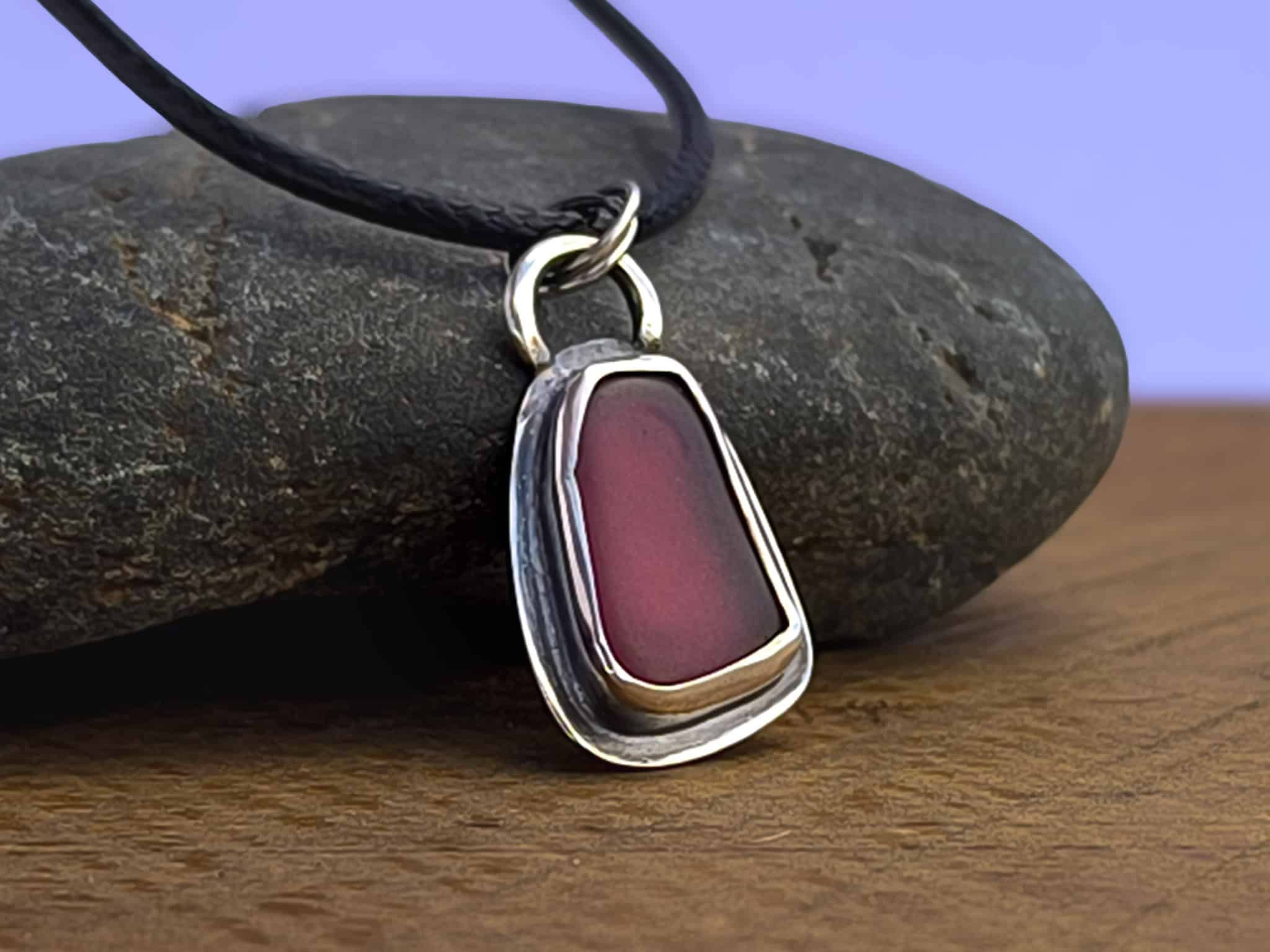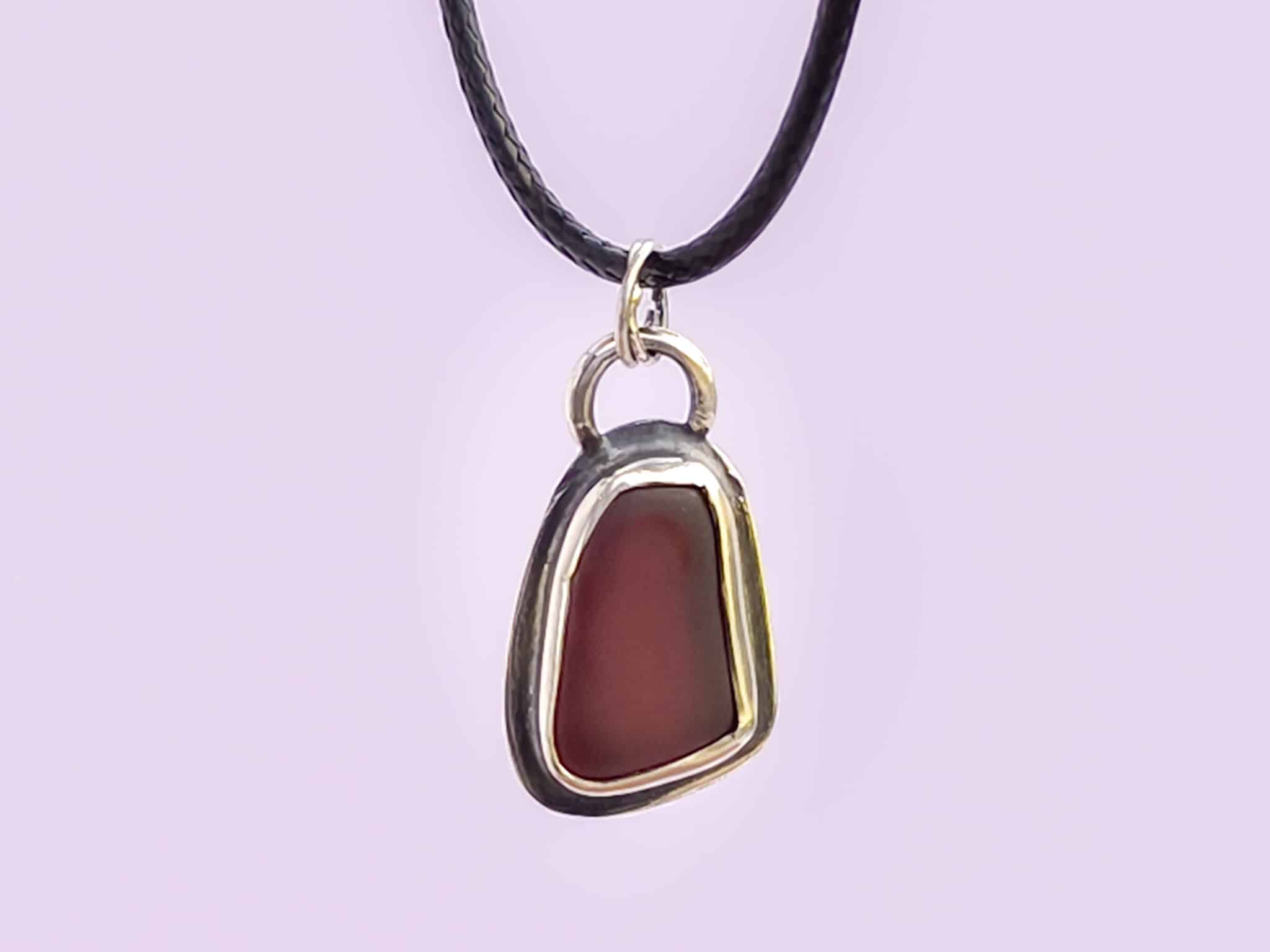 Capture a rare touch of the sea with this handmade red sea glass pendant.