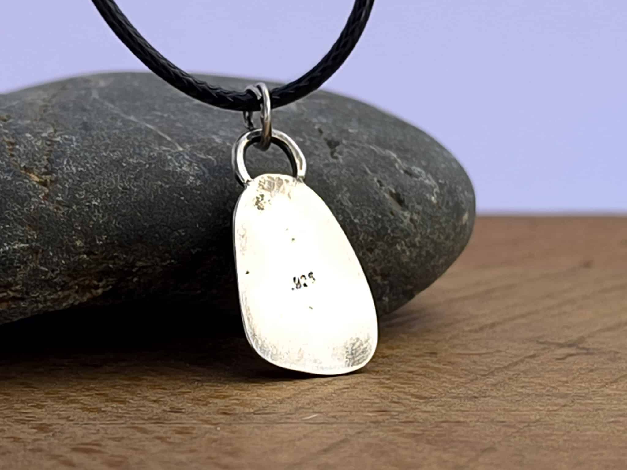 Please note: The pendant itself is sterling silver, while the cord clasp and fittings are silver-tone (not sterling).